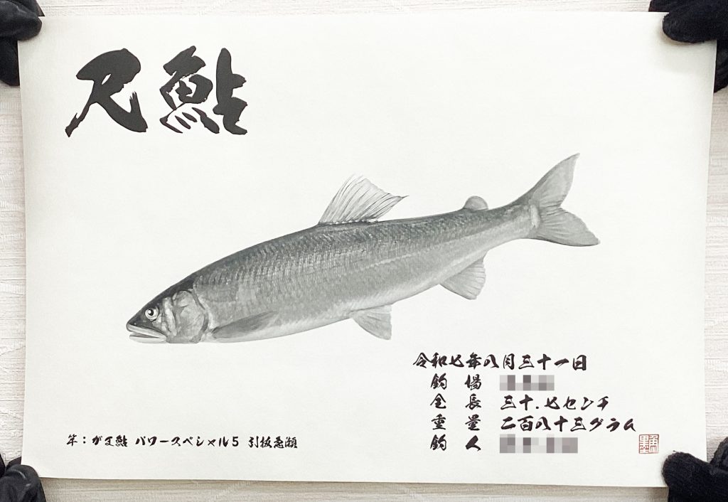 デジタル魚拓作品紹介 【デジタル魚拓作品紹介】墨魚拓 アユ 30.7㎝
