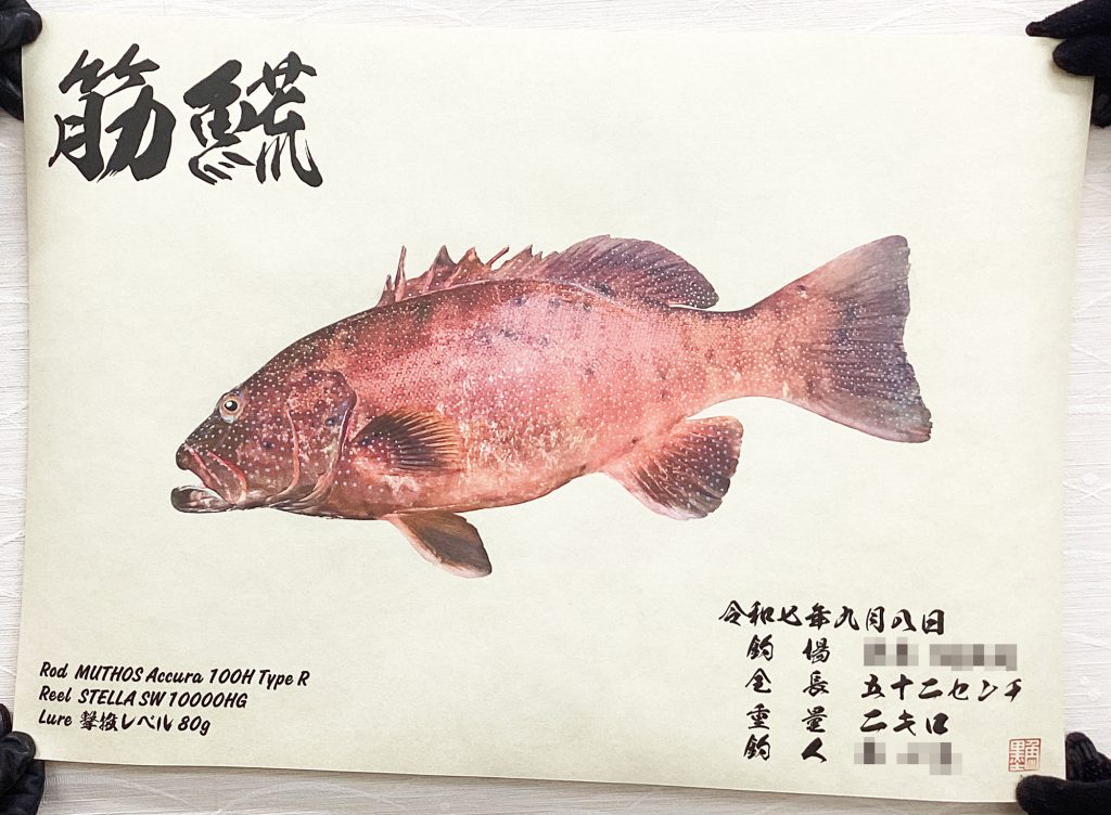 デジタル魚拓作品紹介 【デジタル魚拓作品紹介】カラー魚拓 スジアラ 52㎝