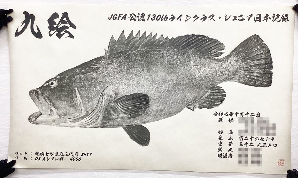 デジタル魚拓作品紹介 【デジタル魚拓作品紹介】墨魚拓 クエ 126㎝