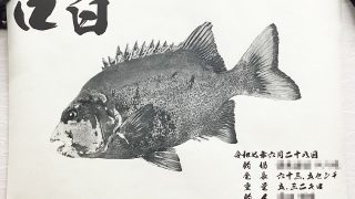 デジタル魚拓作品紹介 【デジタル魚拓作品紹介】墨魚拓 クエ 90㎝ 【バージョン】墨魚拓 【魚種】クエ 90㎝ 【用紙】A1ロング(縦594mm×横1100mm) 【背景】古紙風 【文字】毛筆太字 横書き 『一生で一度釣り上げることができればと日々鍛錬を重ねておられるアングラーもいらっしゃるでしょう( `ー´)ノ』 2025.10.10 デジタル魚拓作品紹介
