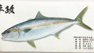 デジタル魚拓作品紹介 【デジタル魚拓作品紹介】リアル魚拓 ヒラマサ 108㎝ 【バージョン】リアル魚拓 【魚種】ヒラマサ 108㎝ 【用紙】A1ロング(縦594mm×横1300mm) 【背景】無地 【文字】毛筆太字 横書き 『巨大なヒラマサを鮮やかに、かつ立体感もプラスして迫力の仕上がりに!!』 2025.10.08 デジタル魚拓作品紹介