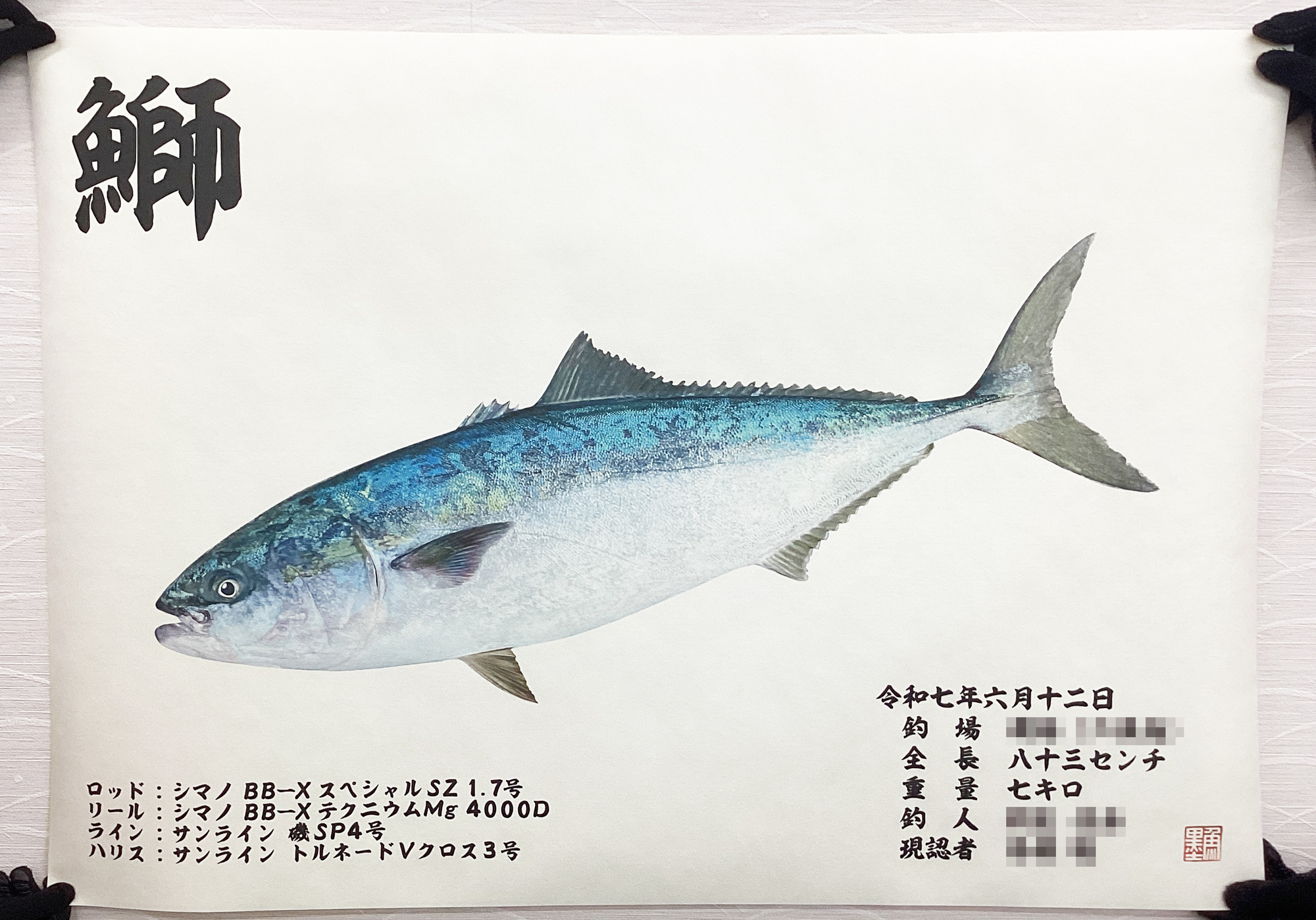 人工的に足して仕上げることもあるカラー魚拓ですが、