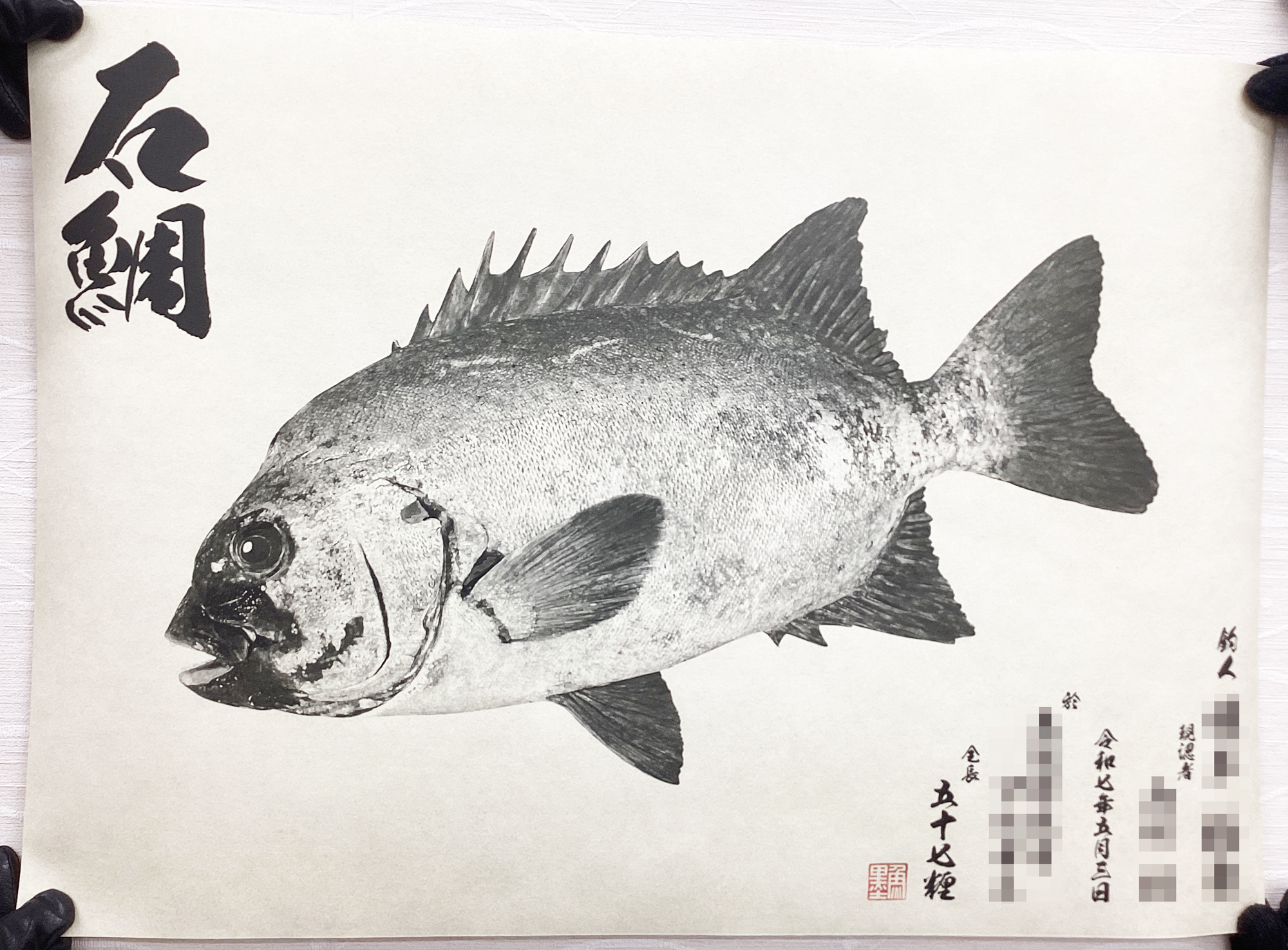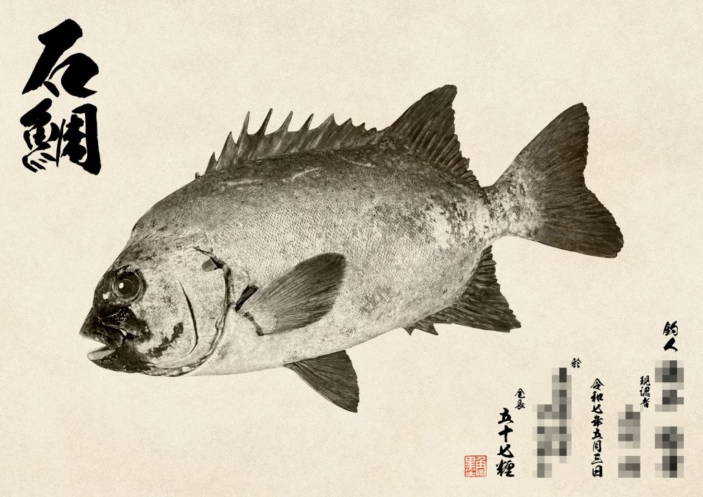 古紙風になると、魚体にも古紙風の背景に馴染むように加工を加えます。