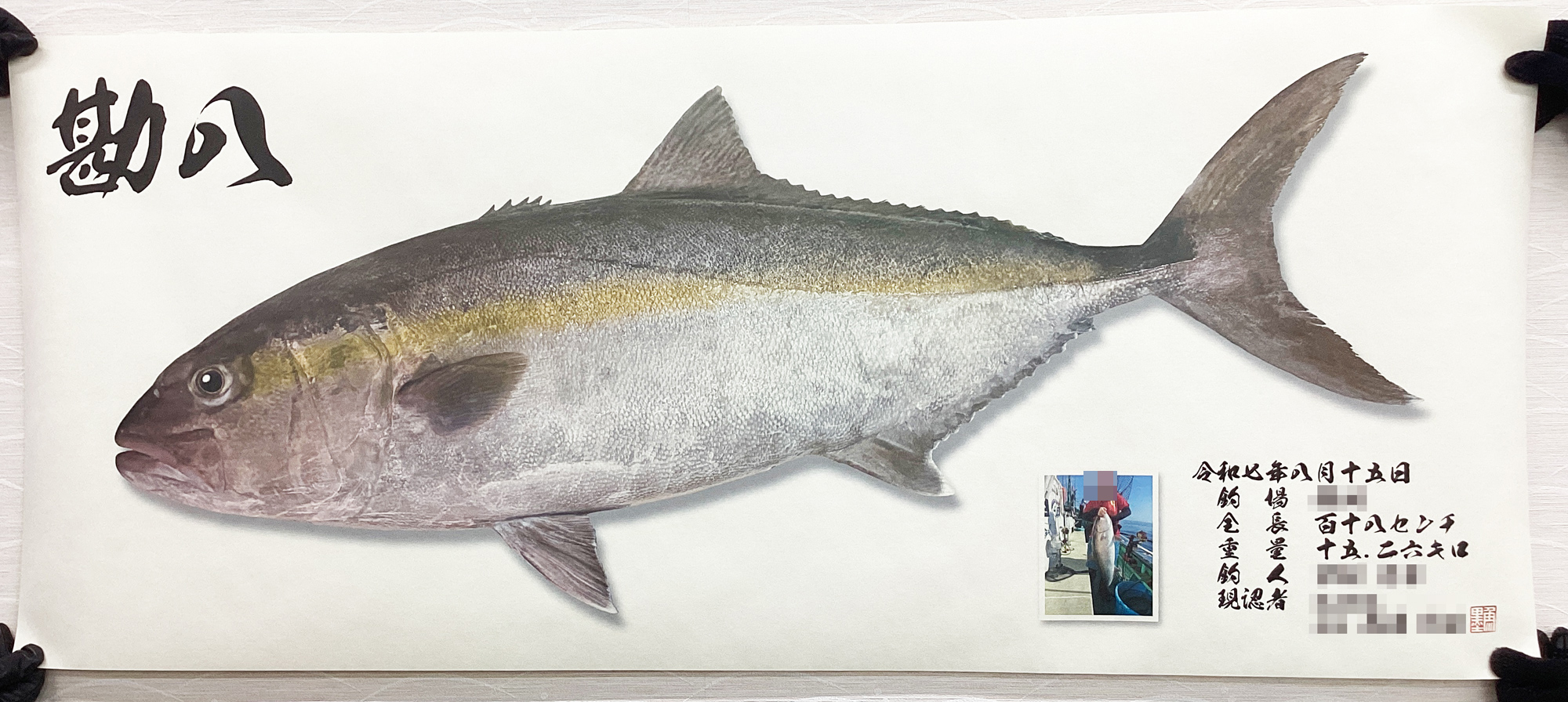 こちらもリアル魚拓に釣果写真を入れる形で制作させていただきました。