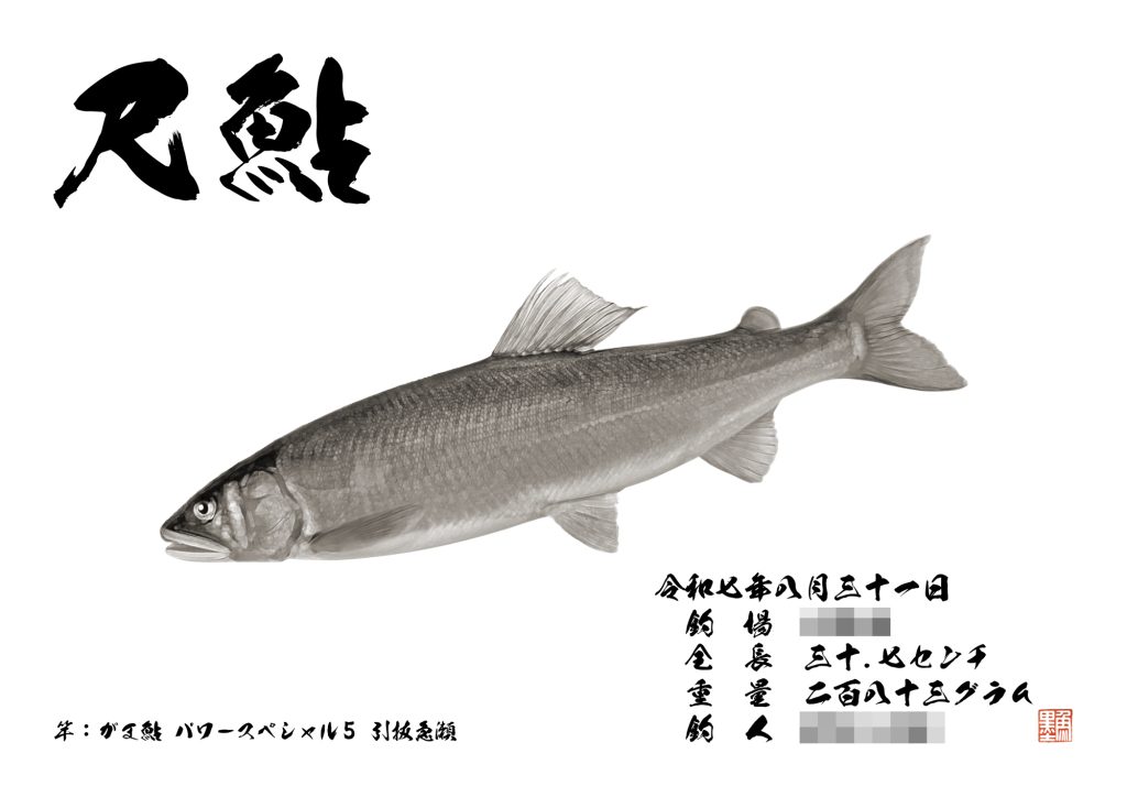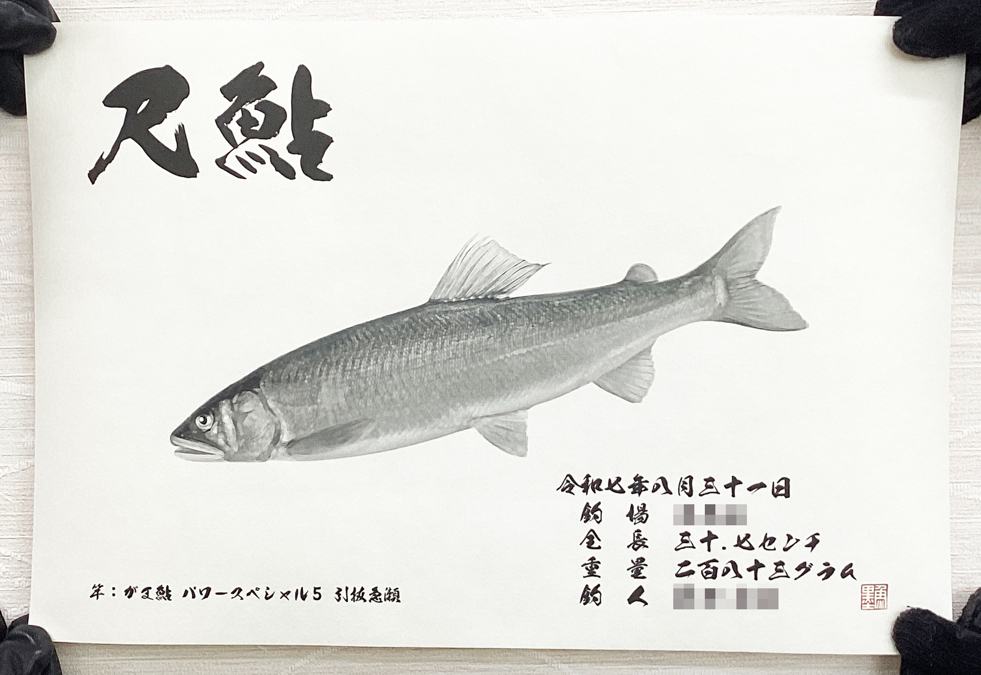 見事な尺鮎を墨魚拓に加工させていただきました。
