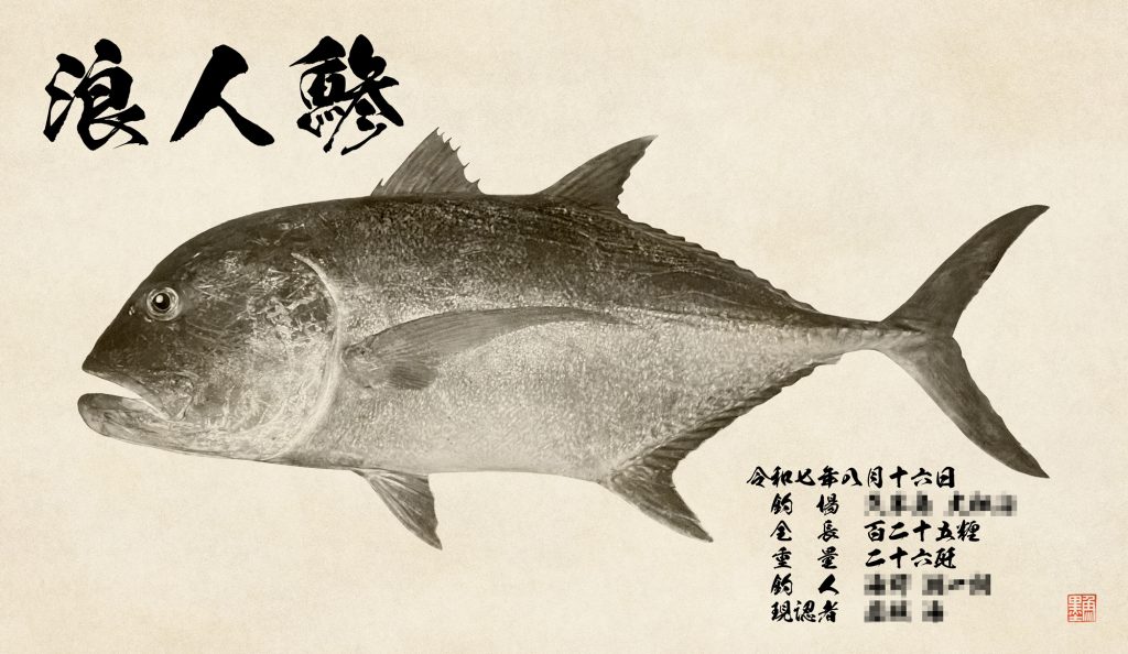 かっこいい釣果を墨魚拓に加工させていただきました。