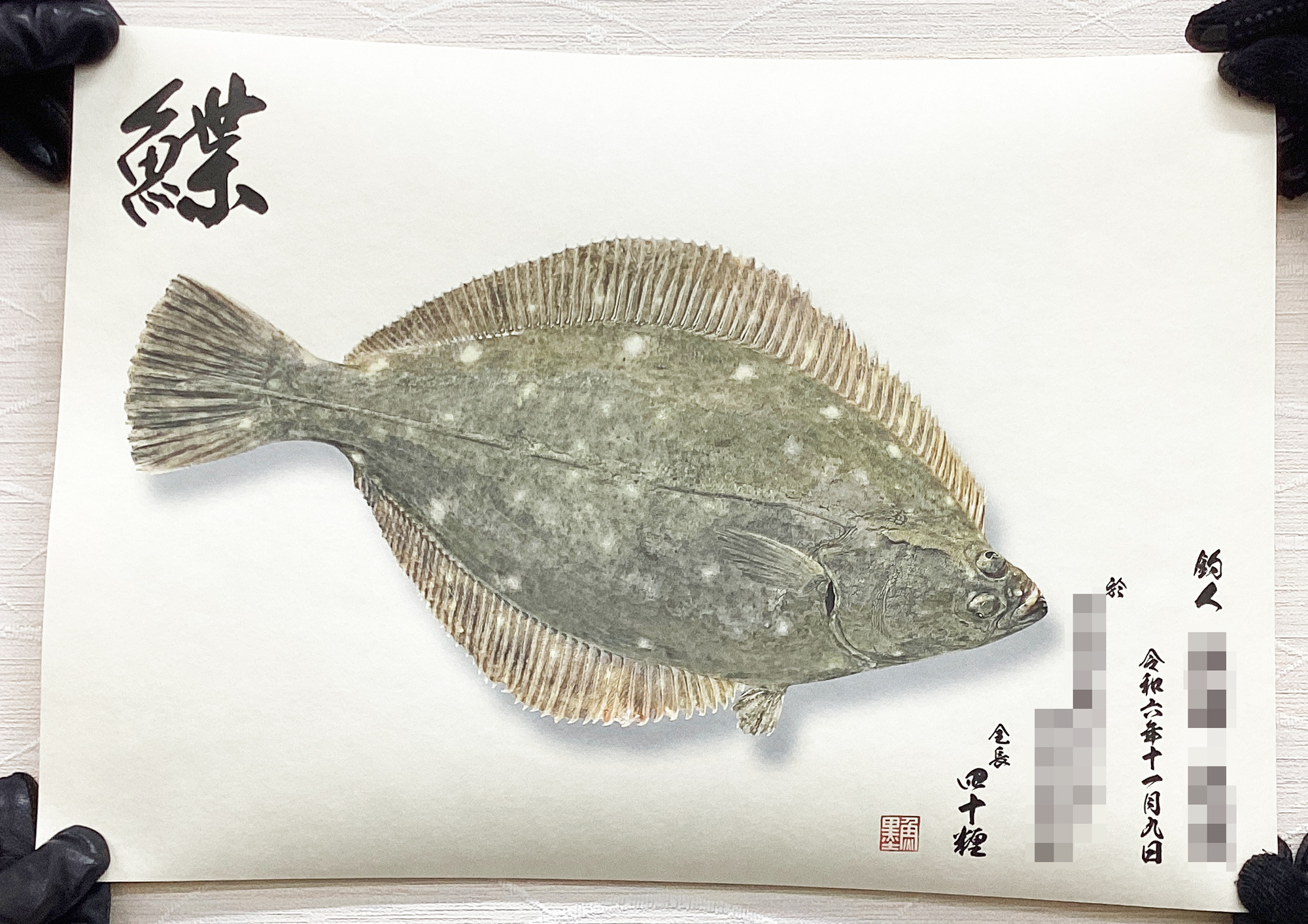 デジタル魚拓ですと、お魚の質感やヒレのごつさも表現できます。