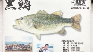 デジタル魚拓作品紹介 【デジタル魚拓作品紹介】『箱根 お食事処 つり舟「おか本」』さま 【バージョン】リアル魚拓 【魚種】ブラックバス 2.91㎏ 【用紙】B2(縦515mm×横728mm) 【背景】無地 【文字】毛筆太字 横書き 『箱根 お食事処 つり舟「おか本」様からご依頼をいただきました!』 2025.12.12 デジタル魚拓作品紹介