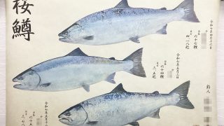 デジタル魚拓作品紹介 【デジタル魚拓作品紹介】カラー魚拓 サクラマス 64㎝ 65㎝ 67㎝ 【バージョン】カラー魚拓 【魚種】サクラマス 64㎝ 65㎝ 67㎝ 【用紙】B1サイズ(縦728mm×横1030mm) 【背景】古紙風 【文字】細行書体 横書き 『見事なサイズのサクラマス3匹の共演です!!』 2025.09.24 デジタル魚拓作品紹介