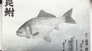 デジタル魚拓作品紹介 【デジタル魚拓作品紹介】墨魚拓 ヘラブナ 41.5㎝ 【バージョン】墨魚拓 【魚種】ヘラブナ 41.5㎝ 【用紙】A2サイズ(縦420mm×横594mm) 【背景】グレー 【文字】極太楷書体 縦書き 『今年はヘラブナのご依頼がたくさんありうれしいです(*^^*)』 2025.09.28 デジタル魚拓作品紹介